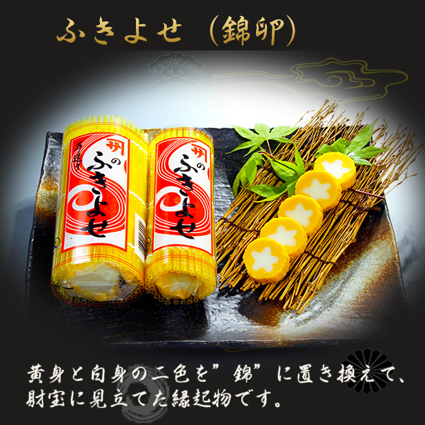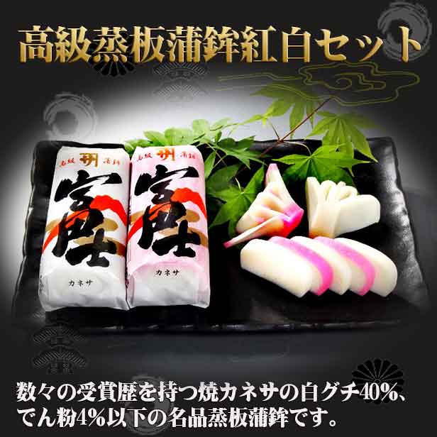 ★数々の受賞歴を持つ名品蒲鉾セットです。★ 【焼津カネサかまぼこ5種セット-C】 価格 2,871 円 (税込 3,100 円)送料別 ※かまぼこは、高級なほど冷凍すると味が劣化します。 ※ 焼津カネサの蒲蒲鉾ットは作りたてをお届けいたします。 新年のおせちには、本物のおいしい作りたてかまぼこを食べましょう! 会席料理、パーティーや※普段使いにも本物の高級蒸板蒲鉾セットをご賞味下さい。 ※おせち用は、12月28までご注文を承ります。 ■ グチ入り高級蒸板かまぼこ「富士」 蒸板かまぼこ「富士」は、高級魚ぐちを40%使用しています。 【全国蒲鉾水産加工業協同組合連合会品評会】において、第27回(昭和49年)から最高技術賞受賞、栄誉大賞、 水産庁長官賞など10回以上の受賞歴を持つ静岡県焼津の創業97年の老舗蒲鉾店 「(株)カネサ大石佐太郎商店」の看板かまぼこです。 そのほか、細工蒲鉾「鶴」や「うなかまくん」など多くのかまぼこが受賞しております。 ■ しっとり伊達巻(袋入り) 1本 カネサの伊達巻は、プロも認めたしっとりジューシーで軽い甘さがおいしさを引き立てます。 ■ ふきよせ(錦卵) 1本 卵の黄身と白身の二色を”錦”に置き換えて、財宝に見立てた縁起物です。あっさりとした甘さがお茶請けにもどうぞ! ■ 長チーズかまぼこ 1本 カネサでロングセーラの人気のかまぼこです。口取りにどうぞ! ■ くん製蒲鉾「うなかまくん」 焼津産ウナギ蒲焼きを蒲鉾で包んで桜のチップでじっくり燻製にしました。 ●蒸板かまぼことリテーナー蒲鉾について 「蒸板かまぼこ」とは、高級魚のシログチや特級スケソウダラのすり身を使用し、加水量やでん粉の添加量が少なく魚本来の味とその魚が持つ弾力を生かすために、”すわり”と呼ばれる蒲鉾独特の現象を出来るだけ起こさせないで作られた高級かまぼこです。 高級すり身を使用することと、加水量が少ないので蒲鉾板の上に練り身を乗せてもだれません。 それをそのまま”裸”のまま蒸したものです。調味料は、味のバランスを取る程度しか使いませんので魚本来のおいしさを味わえるかまぼこです。 一般にスーパー等で販売されているの安価な蒲鉾は、「リテーナーかまぼこ」と呼ばれます。 スケソウダラの冷凍すり身を原料に弾力増強剤(一般的にすわり剤と呼ばれる)を添加し、たっぷり加水し、デンプンをたっぷり入れて作られています。 加水量が多いために、魚のうまみが無くなるので、魚介エキスや調味料で味を補足します。 「リテーナーかまぼこ」は加水量が多いので、かまぼこ板に乗せてもすぐだれてしまいます。 そこで、すぐフィルム(リテーナーフィルム)を巻いて流れ落ちないようにします。 それでも形が崩れやすいので、それをリテーナーの型に入れ、適度な温度で一晩熟成すると、すり身がプリンのように固まります。(これをすわりといいます)。 このすわり工程で固まった「蒸しプリン」のような練り身を蒸して、「リテーナーかまぼこ」が出来上がります。 本来の蒲鉾の味を味わうというより、調味蒲鉾としてプリプリとした”すわり”の食感で、調味料で味付けされています。