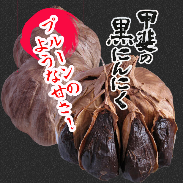■甲府の発酵黒ニンニクとは 甲府の農業生産法人株式会社アイ・ジャパンが、にんにくの栽培から黒にんにく製造まで一貫生産しております。 数多くの原料でテストした結果、青森のニンニクで有名な「ホワイト六片」ではなく、原料にフルーツ王国「甲府」に適した国産早生種を使用し、完全発酵の黒にんにくを生産しております。 ニンニクの強力な健康効果はわかっていても、食べると他人に不快に感じさせる口臭が問題とされてきました。 そこで研究されて作られたものが「発酵黒にんにく」です。 一定の温度と湿度のもとで、約1ヶ月間も熟成させて作られます。 ニンニク中のアミノ酸と糖が反応し、完全熟成すると生ニンニクの臭いは発酵により変化し、真っ黒でプルーンのような甘~い「黒にんにく」になります。 完全発酵させた「黒にんにく」は、食べても生ニンニクのような不快な口臭は出ません。毎日安心して食べることが出来ます。熟成させることによって臭いの原因である揮発性のアリシンが、「S-アリルシステイン」や「S-アリルメルカプトシステイン」いう物質に変化したためです。 S-アリルシステインは経口摂取でも速やかに血中に吸収され、健康効果を発揮します。 最大の特筆すべき特徴は、ポリフェノール類の含量が増え、抗酸化力などの健康効果が、生ニンニクに比べて十倍もパワーアップしていることです。 |