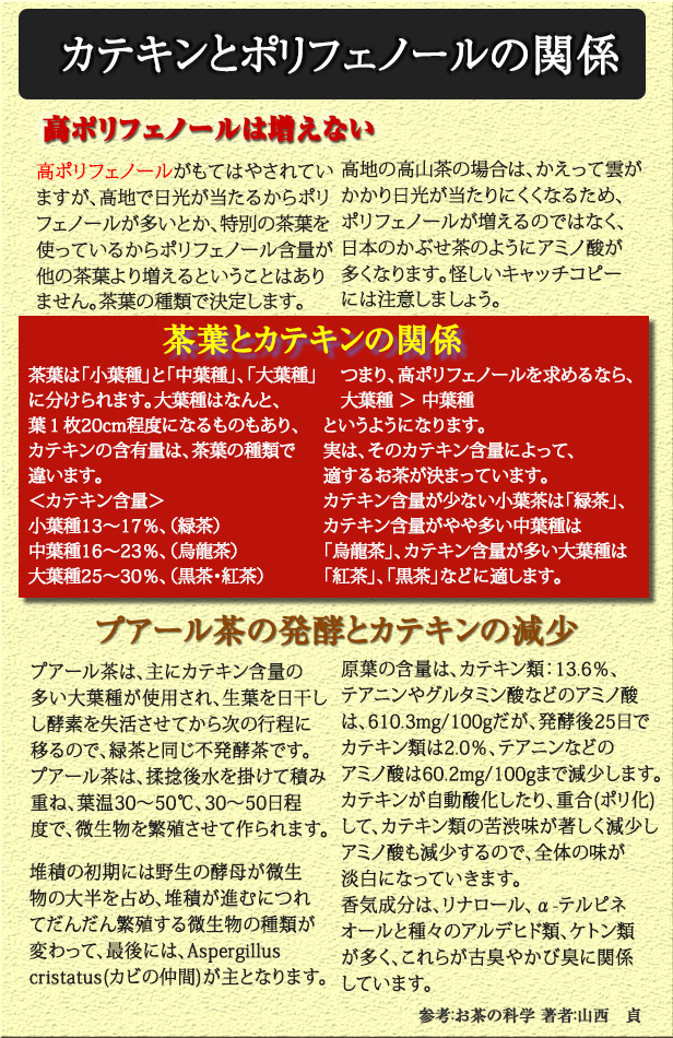 ★プーアール茶と呼べるのは雲南産のみです。★ 【高級プーアール茶 100g】 価格 926 円 (税込 1,000 円) プーアール茶(プアール茶)には「熟茶」と「生茶」の2種類があります。 「熟茶」は、人工的に菌をつけて強制的に発酵させたもの。 「生茶」は、生茶葉を自然な菌によって発酵させたもの。 おいしくなるまで年数がかかり、何年も何十年もねかせることで美味しくなっていきます。 脂肪分解酵素を含んでいるのでダイエットティーとしても注目されますが、あくまでもダイエットのお供として考えて下さい。 当店のプーアール茶(プーアル茶)は殺菌していないので酵素が生きており、年々熟成されて味が変わっていきます。 正規輸入茶は、栽培から製茶まで完全に管理されています。 当店のプーアール茶は使用する原料選別と製造方法、火入れなどを完全管理して作られていますのでカビ臭さは全くありません。 ■プーアール茶(黒茶)は「後発酵」という独自の発酵方法で、茶葉を高温多湿の場所におきチーズのように空気中の微生物により発酵させて作られます。 長期間寝かせるほど深い味わいになるため、長い年月を経たものほど価値が上がり値段も高くなります。 一次、投資対象となって価格が異常な高騰しましたが、投資に失敗して多くの倒産企業も出ました。 市場では、有名ブランドのプーアール茶の偽物も氾濫しているのが実情です。 ■簡単ダイエットのすすめ! 当社の見解としては、実はプーアール茶はダイエットのお供にはなりますが主役にはなりません。 簡単にダイエットしたいなら、糖質を制限するだけで簡単に痩せられます。肉も油もカロリーも気にすることはありません! たっぷりの野菜と高タンパク中心食で、見た目だけで糖質を20%以下に抑える簡単ダイエット食です。 いい加減な栄養学が氾濫しています。 生野菜にはビタミンやミネラルも多いから体に良いとか、中には野菜にビタミンAが多いので体に良いなどという間違いです。 野菜にはビタミンAは含まれていません。 人参などのカロチンにビタミンA効力があるのです。こういう物質を「プロビタミン」と言います。 生のキュウリにはビタミンC分解酵素が含まれているのでビタミンCを壊してしまいます。 ほうれん草にカルシウムが多いので体に良いなどという料理研究家もいますが、ほうれん草のカルシウムはシュウ酸カルシウムなので吸収されません。 野菜が体に良いといっても生野菜もそんなに食べられるものではありません。 少しブランチングしたり塩もみするだけで酵素も失活して量もたっぷり食べられ吸収も良くなります。 トクホとして認定されている高ポリフェノール飲料も、摂りすぎで肝臓の健康被害も報告されています。 天然だから安全などというデタラメなことを平気で言う人もいます。 どんな安全なものでも、偏ったものの過度な食べ過ぎや飲み過ぎはかえってマイナスに働くのです。 |