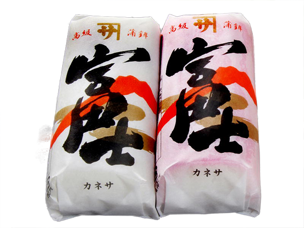 ★数々の受賞歴を持つ焼津カネサ大石佐太郎商店の名品蒸し板蒲鉾★ 【グチ入り高級蒲鉾「富士」紅白セット 1組】 価格 1,112 円 (税込 1,200 円)送料別 【全国蒲鉾水産加工業協同組合連合会品評会】において、 第27回(昭和49年)から最高技術賞受賞、栄誉大賞、水産庁長官賞など10回以上の受賞歴を持つ、 静岡県焼津の創業95年の老舗蒲鉾店「(株)カネサ大石佐太郎商店」の看板かまぼこです。 ●冷凍すり身 昔は,地元で獲れた生の魚だけで作られていました。そのためそれぞれの地方独特の味がありました。しかし、現在のほとんどの蒲鉾は、スケソウダラなどの魚を水さらしして、砂糖やトレハロースやリン酸塩などを入れた「無塩冷凍すり身」が使用されています。 スケソウダラの卵が「たらこ」や「辛子明太子」になります。 ●蒸板蒲鉾とリテーナー蒲鉾について 「蒸板蒲鉾」とは、高級魚のシログチや特級スケソウダラのすり身を使用し、 加水量やでん粉の添加量が少なく、魚本来の味とその魚が持つ弾力を生かすために、 ”すわり”と呼ばれる蒲鉾独特の現象を出来るだけ起こさせないで作られた高級蒲鉾です。 高級すり身を使用することと、加水量が少ないので蒲鉾板の上に練り身を乗せてもだれません。 それをそのまま”裸”で蒸したものです。調味料は、味のバランスを取る程度しか使いませんので魚本来のおいしさを味わえる蒲鉾です。 一般にスーパー等で販売されているの安価な蒲鉾は「リテーナー蒲鉾」と呼ばれます。 スケソウダラの冷凍すり身を原料に、弾力増強剤(一般的にすわり剤と呼ばれる)を添加し、たっぷり加水し、デンプンをたっぷり入れて作られています。 加水量が多いために、魚のうまみが無くなるので、魚介エキスや調味料で味を補足します。 「リテーナー蒲鉾」は加水量が多いので、かまぼこ板に乗せてもすぐだれてしまいます。 そこで、すぐフィルム(リテーナーフィルム)を巻いて流れ落ちないようにします。 それでも、形が崩れやすいので、それをリテーナーの型に入れ、適度な温度で一晩熟成すると、すり身がプリンのように固まります。(これをすわりといいます) このすわり工程で固まった「蒸しプリン」のような練り身を蒸して「リテーナー蒲鉾」が出来上がります。 本来の魚の味を味わうというより、調味蒲鉾として、プリプリとした”すわり”の食感が特徴です。 |